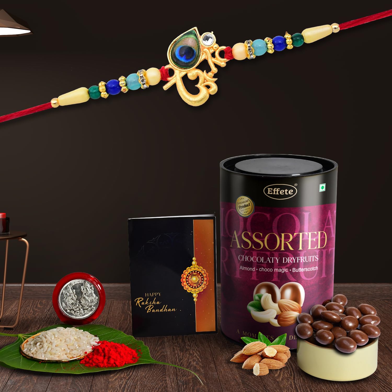 (K1_438_AS) Rakhi Combo with Assorted Chocolate Dryfruits 96gm, Rakhi & Chocolate for brother, Rakhi with chocolate, rakhi with gift, Rakhi Combo, Set of 1 Rakhi, Chocolate