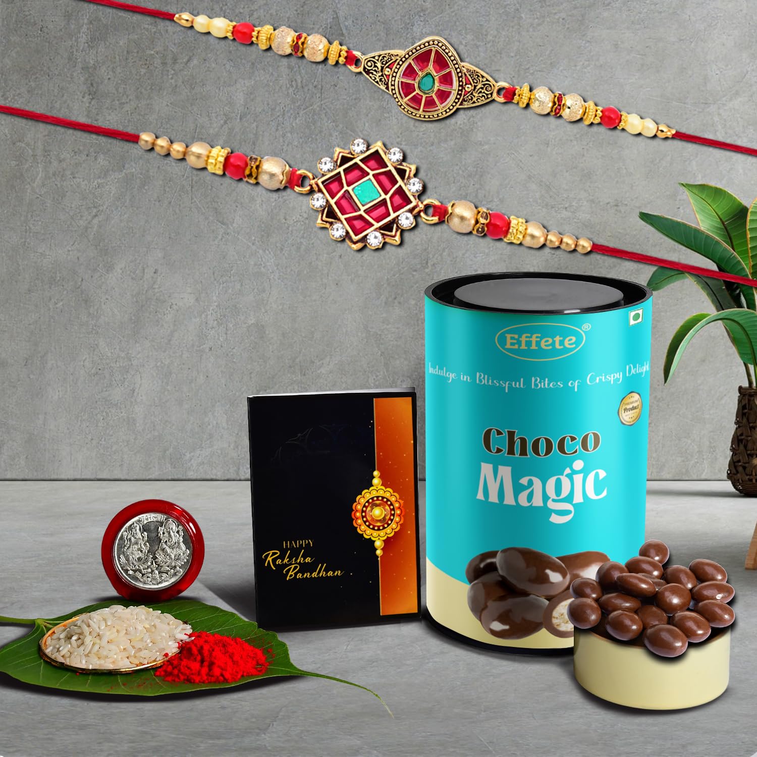 (K2_418+419_CM) Rakhi Combo with Chocolate Magic, Rakhi & Chocolate for brother, Rakhi with chocolate, rakhi with gift, Rakhi Combo, Set of 2 Rakhi, Chocolate