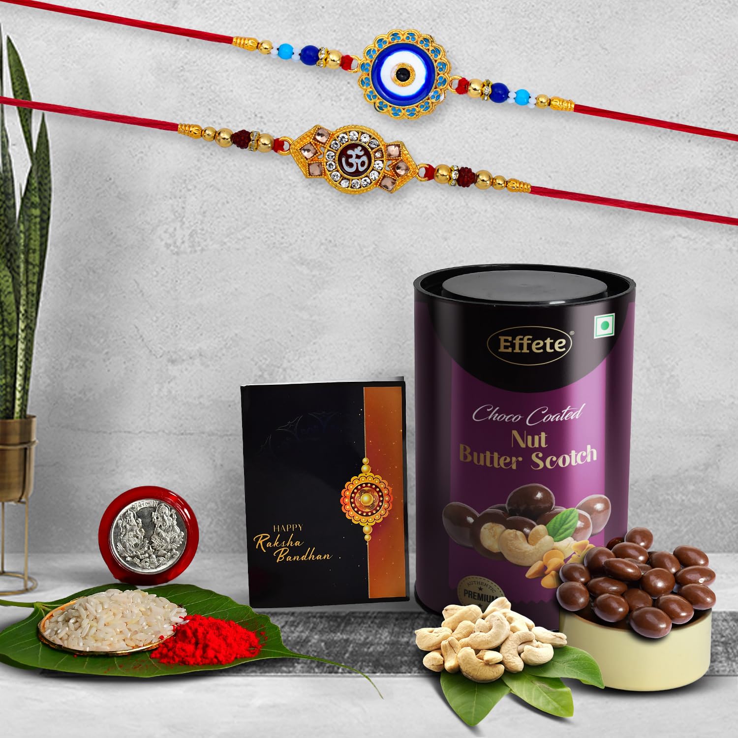 (K2_516+517_BS) Rakhi Combo with Chocolate Butter Scotch 96gm | stylish rakhi for brother | Rakhi & Chocolate for brother | rakhi brother | rakhi with gift | handmade rakhi | Set of 2