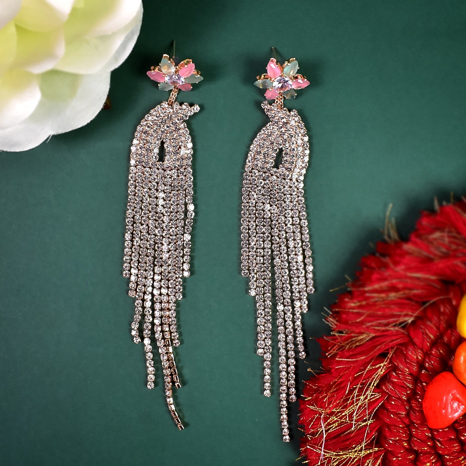 Designer Plated Drop Earring Crystal Long Lop Earrings for Women