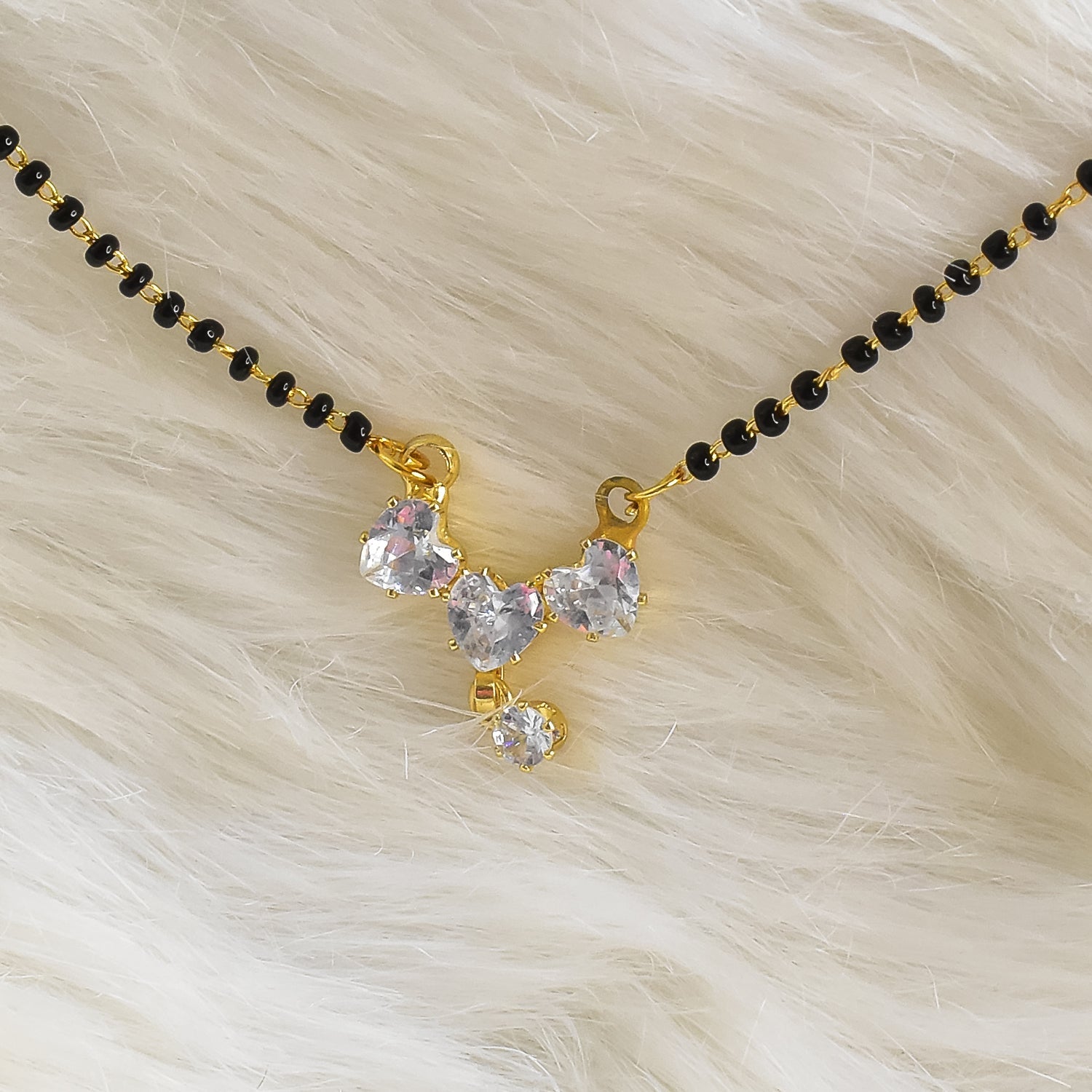 Gold Plated Maharashtra Short Mangalsutra and Heart Shape Pendant Black Beads Brass Mangalsutra