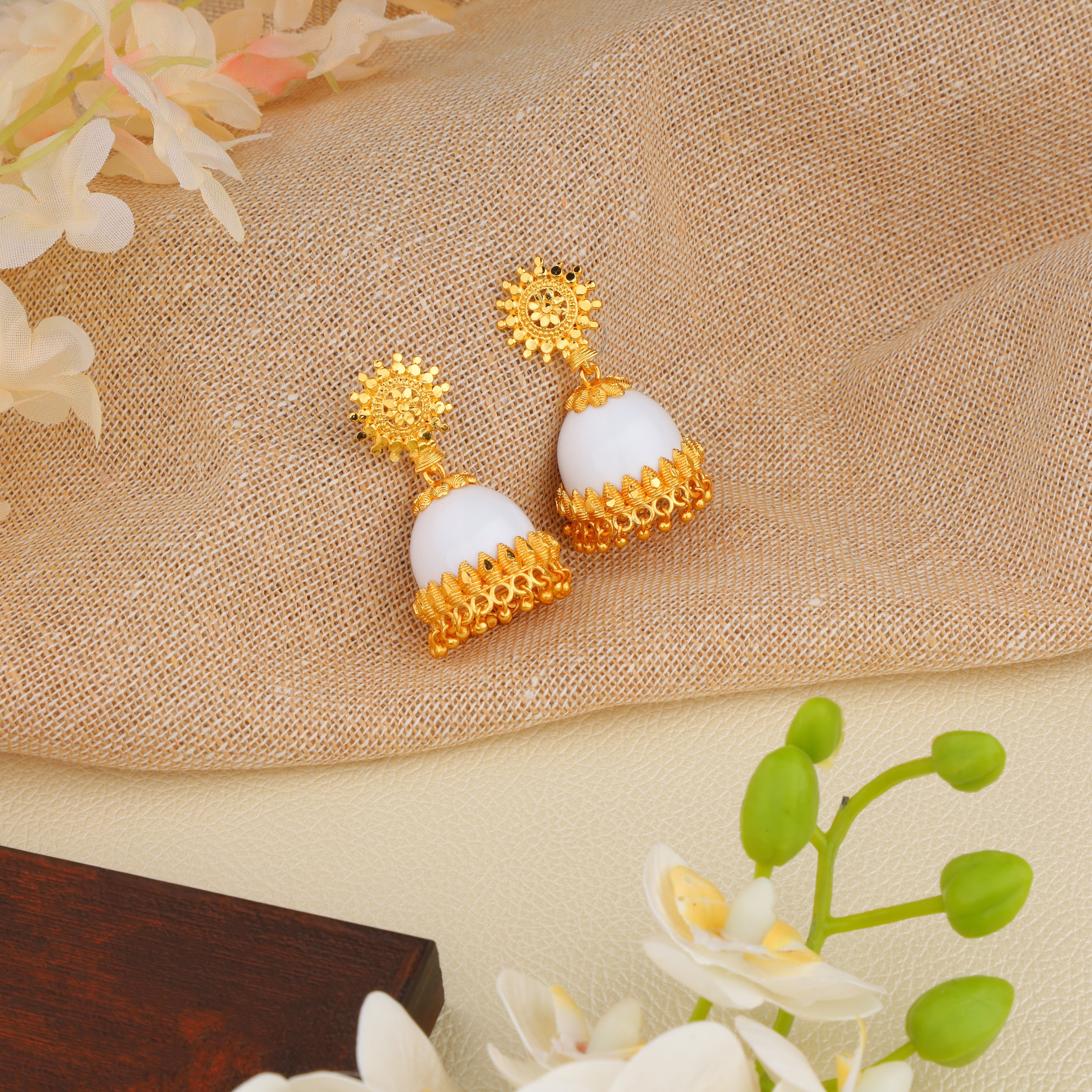 A small jumka is a traditional style of earring often worn by women, especially in South Asia. Here's a description of a girl wearing a small jumka: